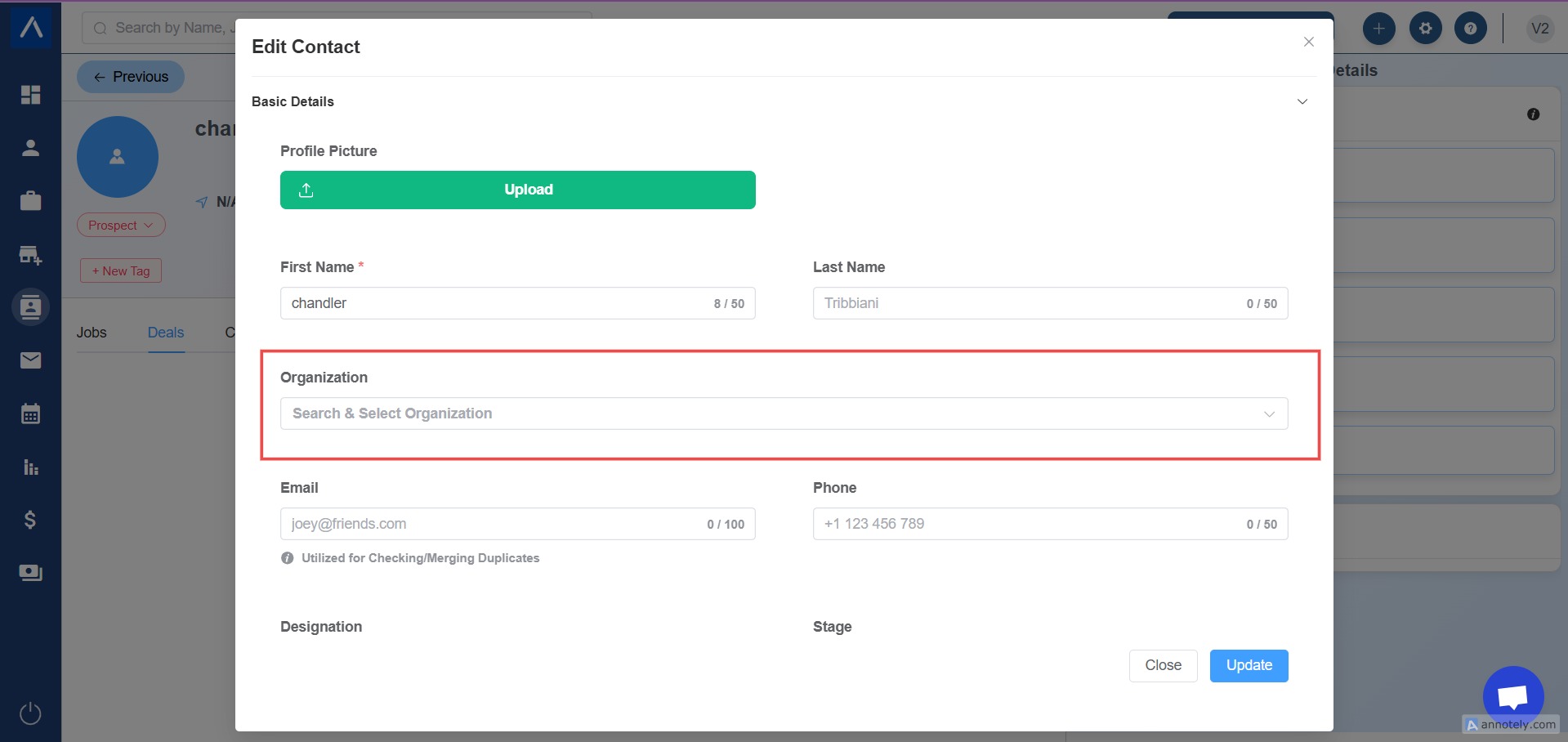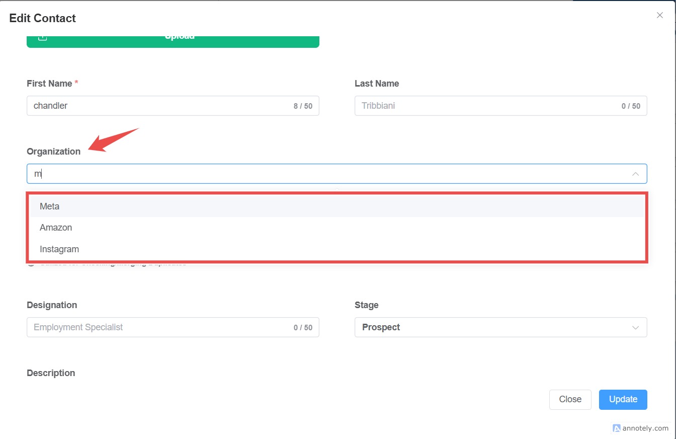 Assigning a contact to an organization in ATZ CRM helps streamline your workflow by keeping all relevant details grouped together. Follow these steps: