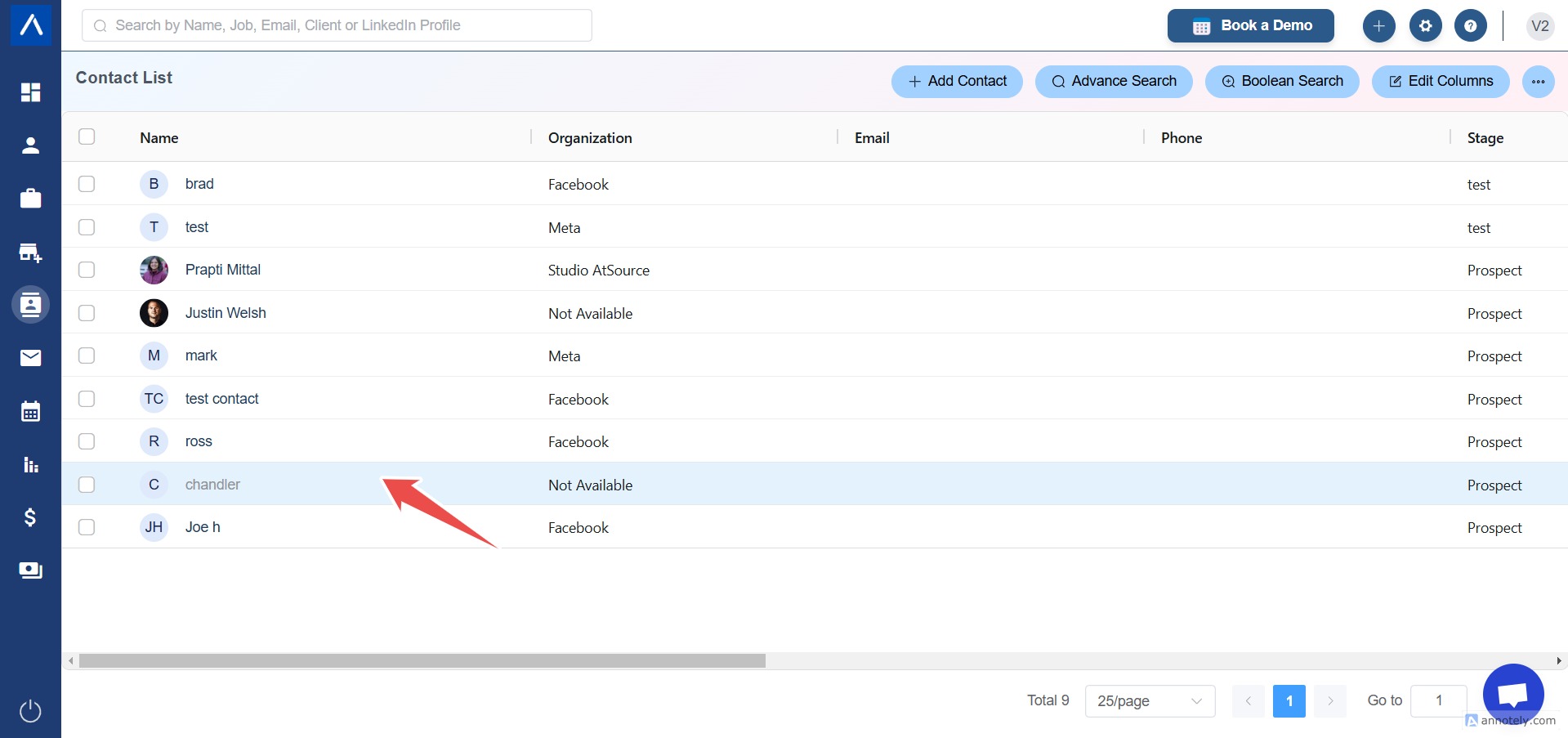 Step 2: Click on the contact name to open their detailed profile page.