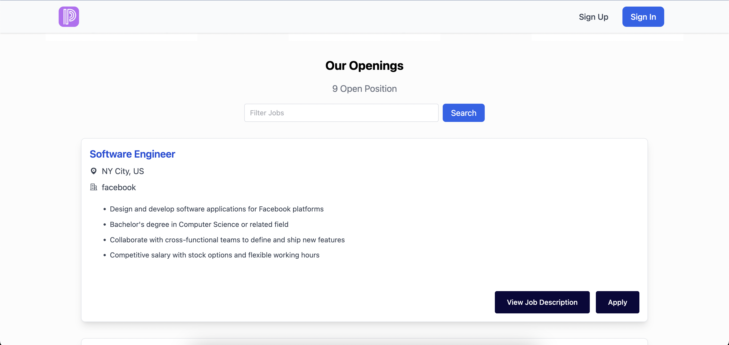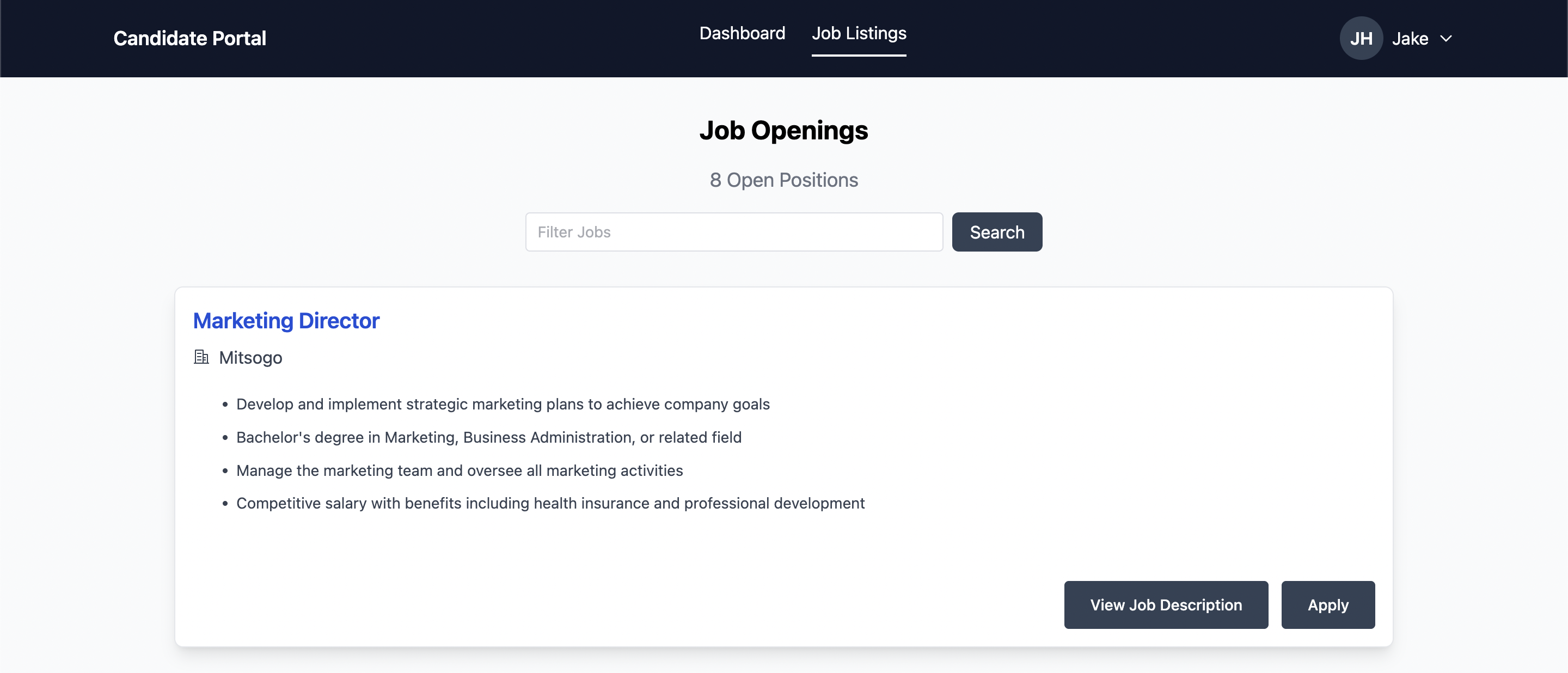 Exploring Job Listings: Candidates can view all available job postings without an account.