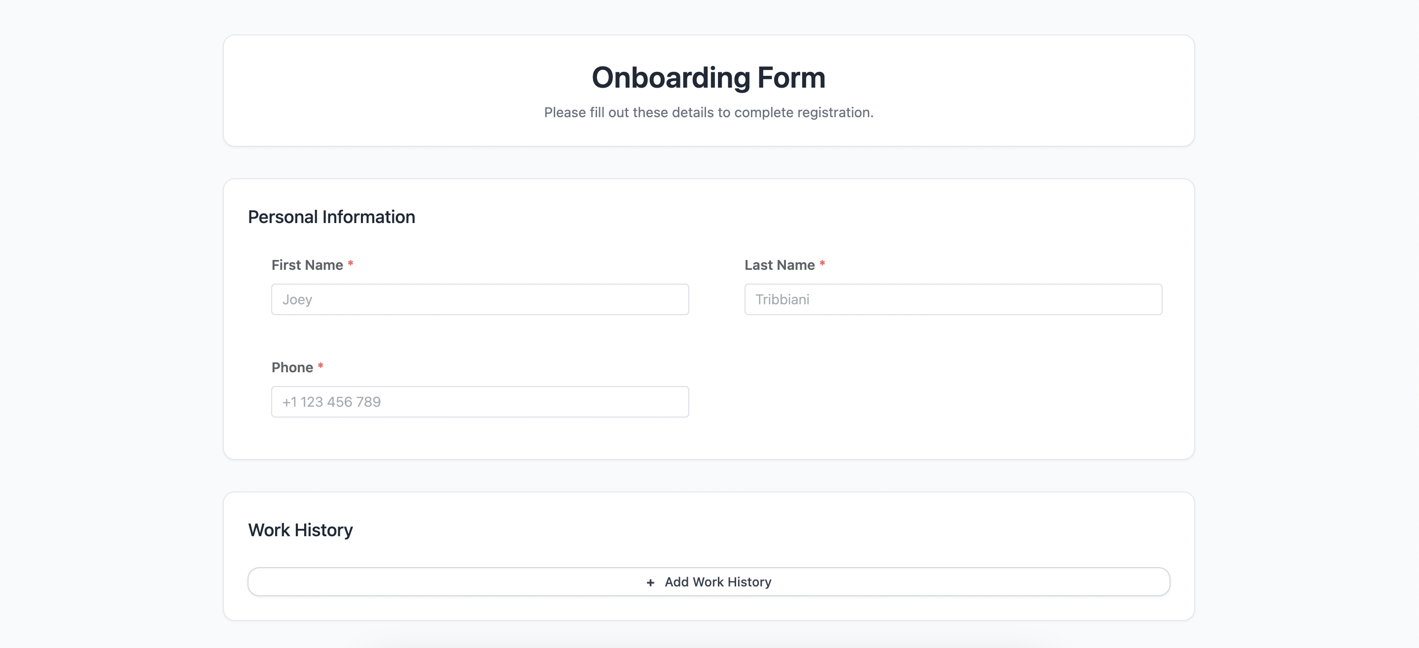 Onboarding and Profile Forms: Tailor fields in Admin Settings to collect specific candidate information.
