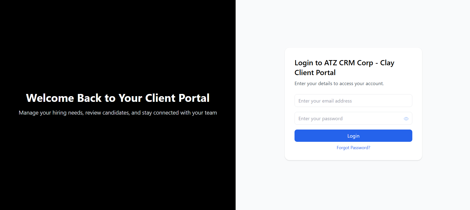 The Client Portal makes it simple for organizations to submit job requisitions directly to recruiters using ATZ CRM. This ensures a smooth workflow where recruiters instantly receive and manage job requests.