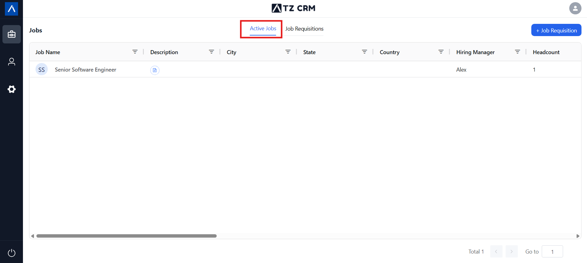From the dashboard, go to the Job List section and click on the add requisition button.