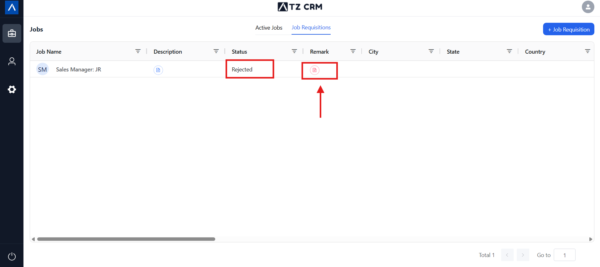 If the recruiter approves the requisition, it will move to the Active Jobs list.Job Rejection: