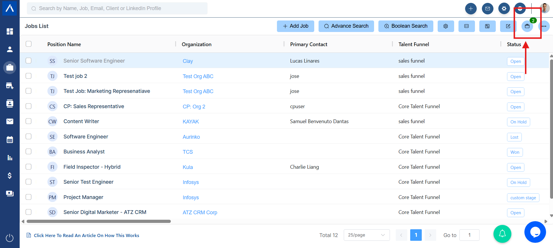 Here, you’ll see all job requisitions submitted by client contacts, along with their organization details.