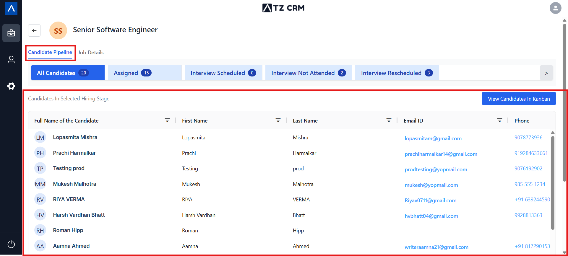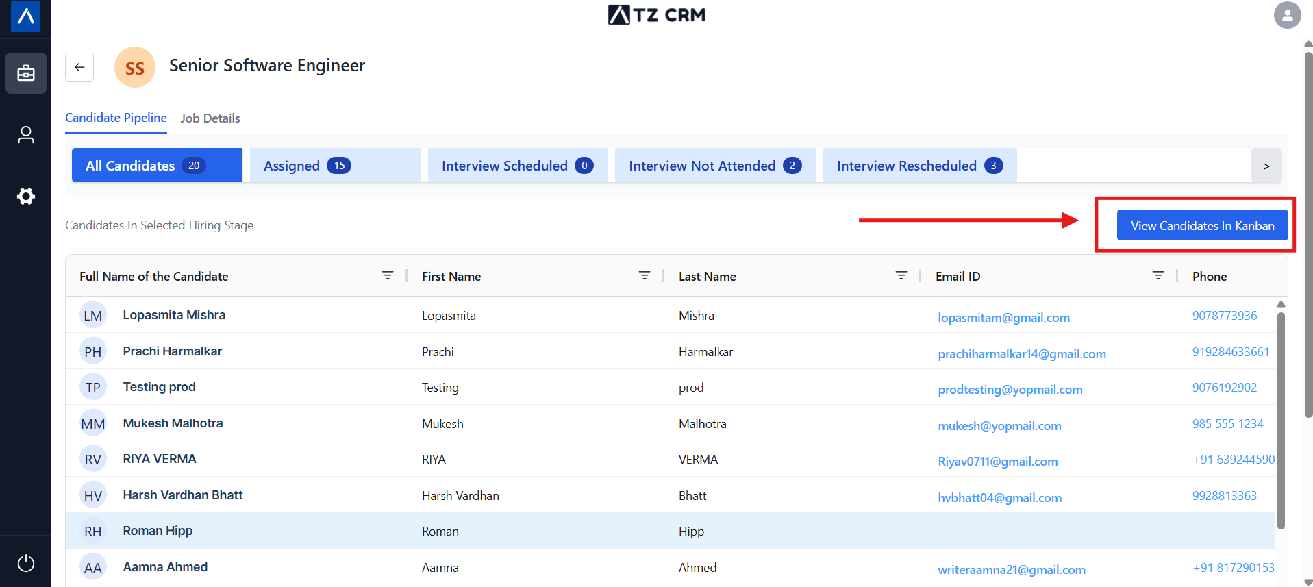 Update the candidate’s status by Drag and drop (e.g., move from “Interview Scheduled” to “Offer Sent”).