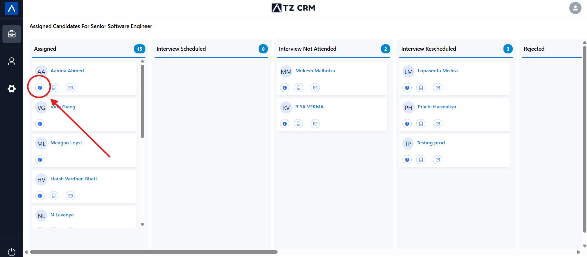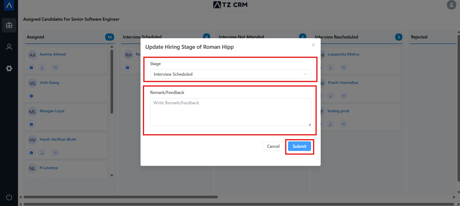 Note: You can only move candidates to the stages allowed by the ATZ CRM recruiter.